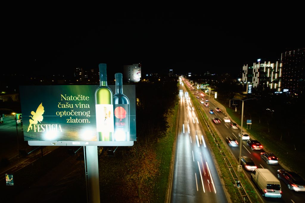 IZAZOV RJEŠENJE Kreativna koncepcija Kampanja koristi simboliku zlata i luksuza kao metaforu za kvalitetu i prestiž Festigia vina. Dinamična kompozicija – kombinacija osvijetljenih boca i snažne poruke – privlači pažnju prolaznika, a elegantan ton komunicira premium vrijednosti brenda. Posebno vrijedi istaknuti mogućnost kreativnih ekstenzija i dodataka na sam bigboard – poput trodimenzionalnih elemenata, produženja vizuala […]